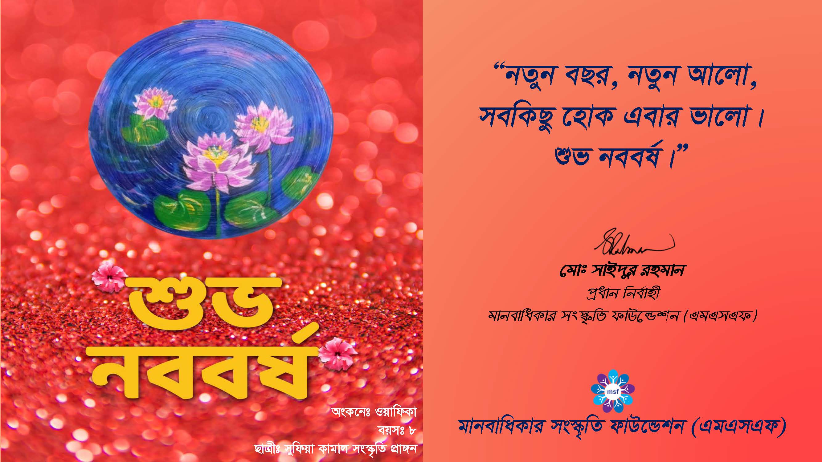 It is my great privilege to welcome you to the website of the Manabadhikar Shongskriti Foundation (msf), a Foundation dedicated to cultivating a culture of human rights in Bangladesh. At msf, we believe that the cornerstone of a fair and just society lies in actively defending and promoting human rights for all.
